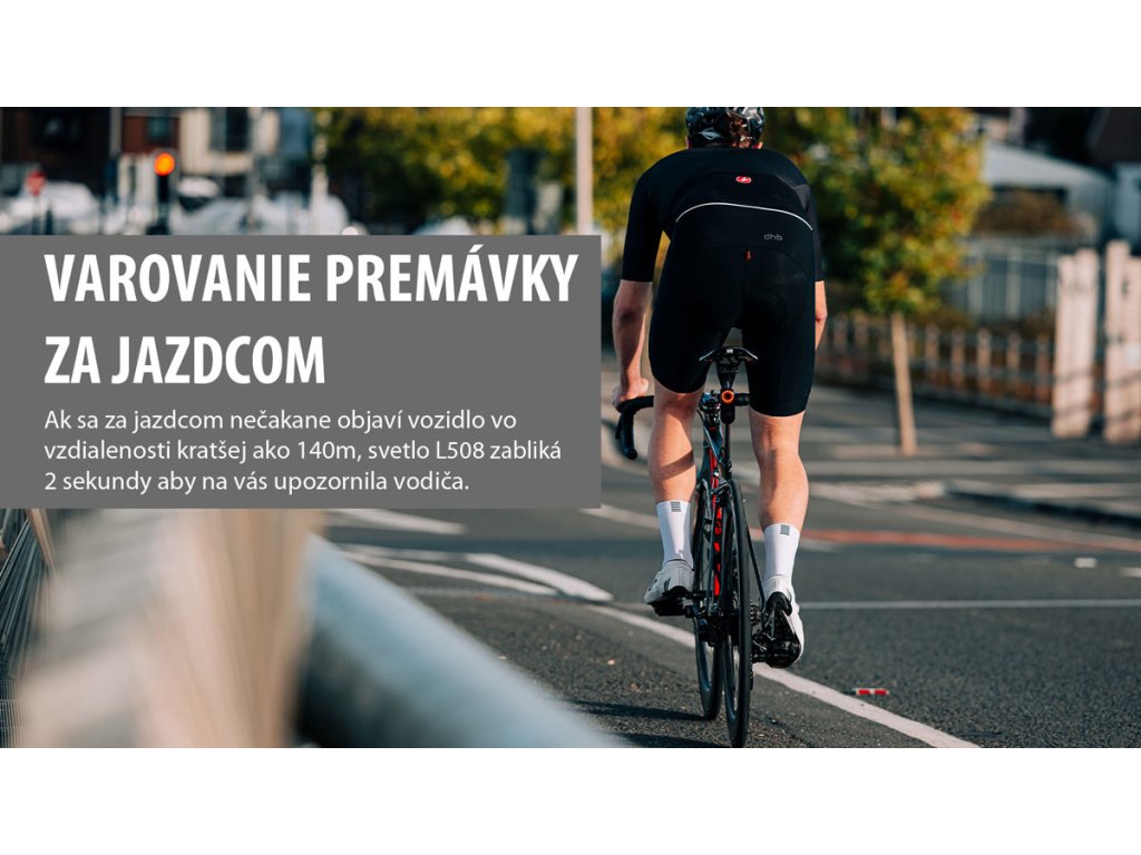 Pre koho je svetlo L508 RADAR ideálneToto zadné svetlo s radarom je určené pre cyklistov, ktorí jazdia po cestách a chcú mať lepší prehľad o dianí za sebou. Hodí sa na každodenné tréningy, dlhé výjazdy aj cestovanie, kde oceníte včasné varovanie pred približujúcimi sa vozidlami a výraznú viditeľnosť. So štvrťotáčkovým držiakom ho rýchlo nasadíte aj zložíte. Integrovaná gumená podložka je kompatibilná s okrúhlymi aj aero sedlovkami v tvare D a bezpečnostná šnúrka pomáha chrániť svetlo pred poškodením pri náhodnom odistení. USB-C nabíjanie a výdrž až 16 hodín dopĺňa odolnosť IPX7 do každého počasia. |