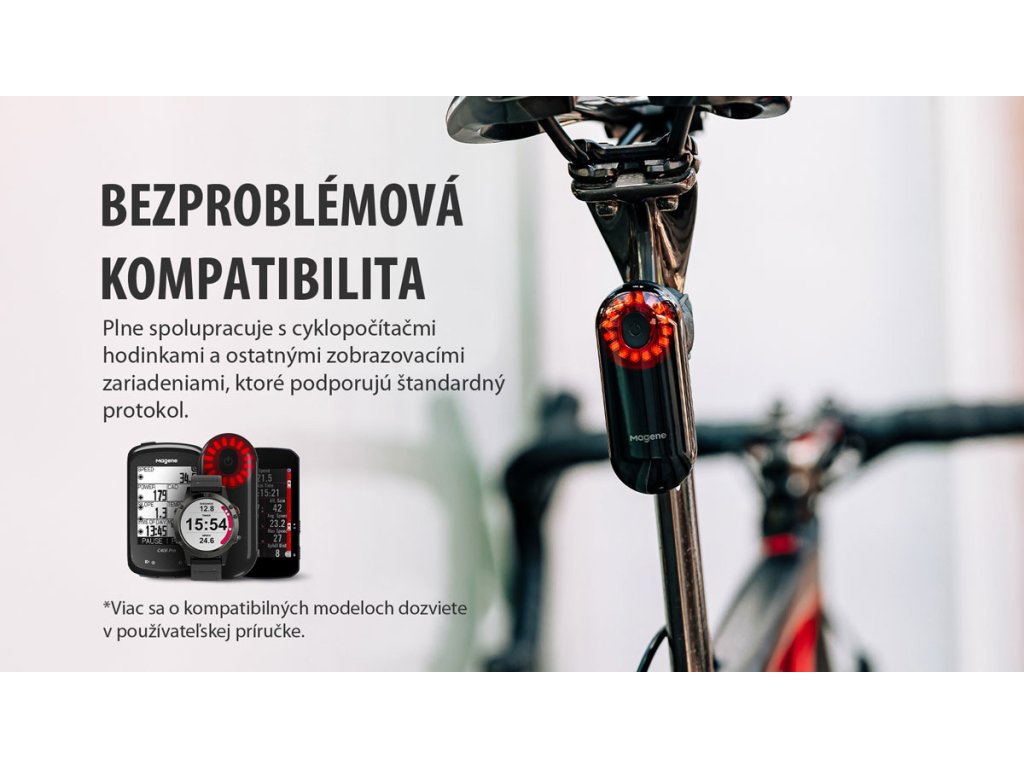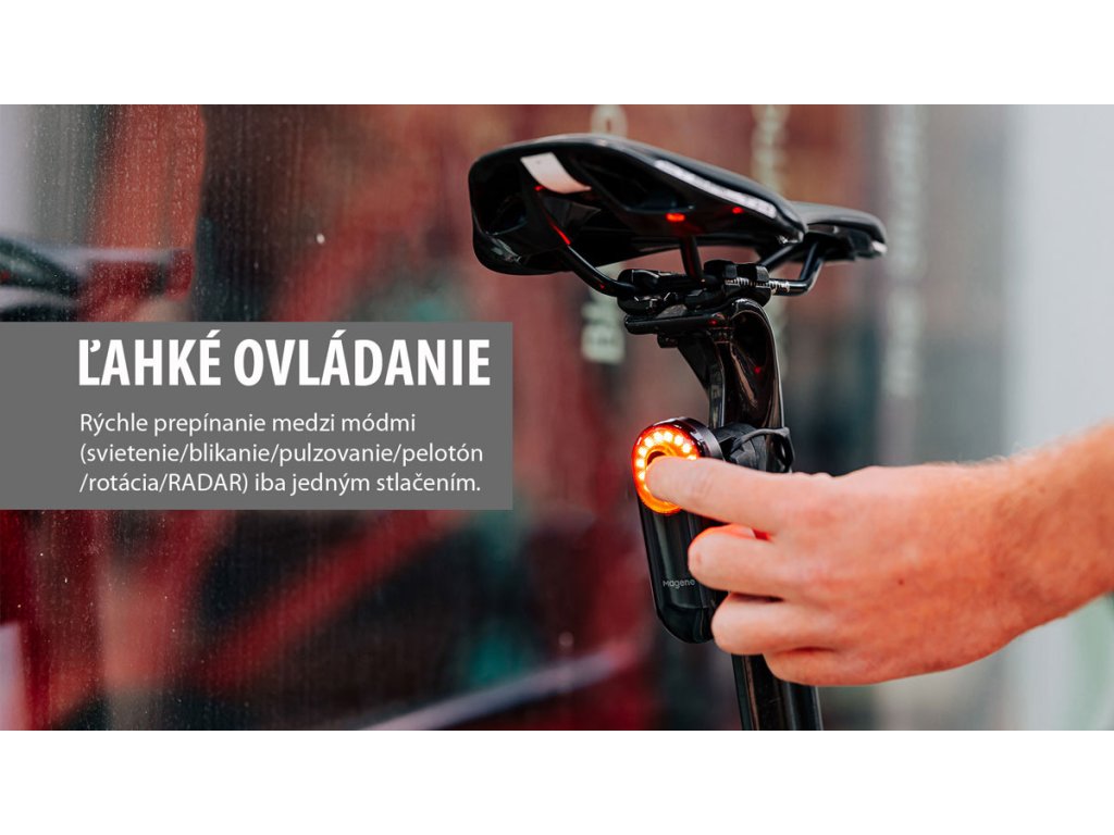 Smart konektivita a jednoduché ovládanieSEEMEE 508 podporuje Bluetooth a ANT+ – cez štandardný ANT+ radar protokol ho pripojíte k cyklopočítačom, hodinkám alebo iným zobrazovacím zariadeniam. Upozornenia sa zobrazujú na displeji a dopĺňajú ich zvukové signály, aby ste zostali v plnej pohotovosti. Ovládanie je intuitívne: dlhým stlačením zariadenie zapnete/vypnete, krátkym prepínate 6 režimov (STÁLE SVETLO, BLIKANIE, PULZ, PELOTÓN, ROTÁCIA, IBA RADAR). V aplikácii MAGENE Utility APP si môžete prispôsobiť správanie radaru v jednotlivých režimoch a upraviť intervaly blikania/pulzu. |