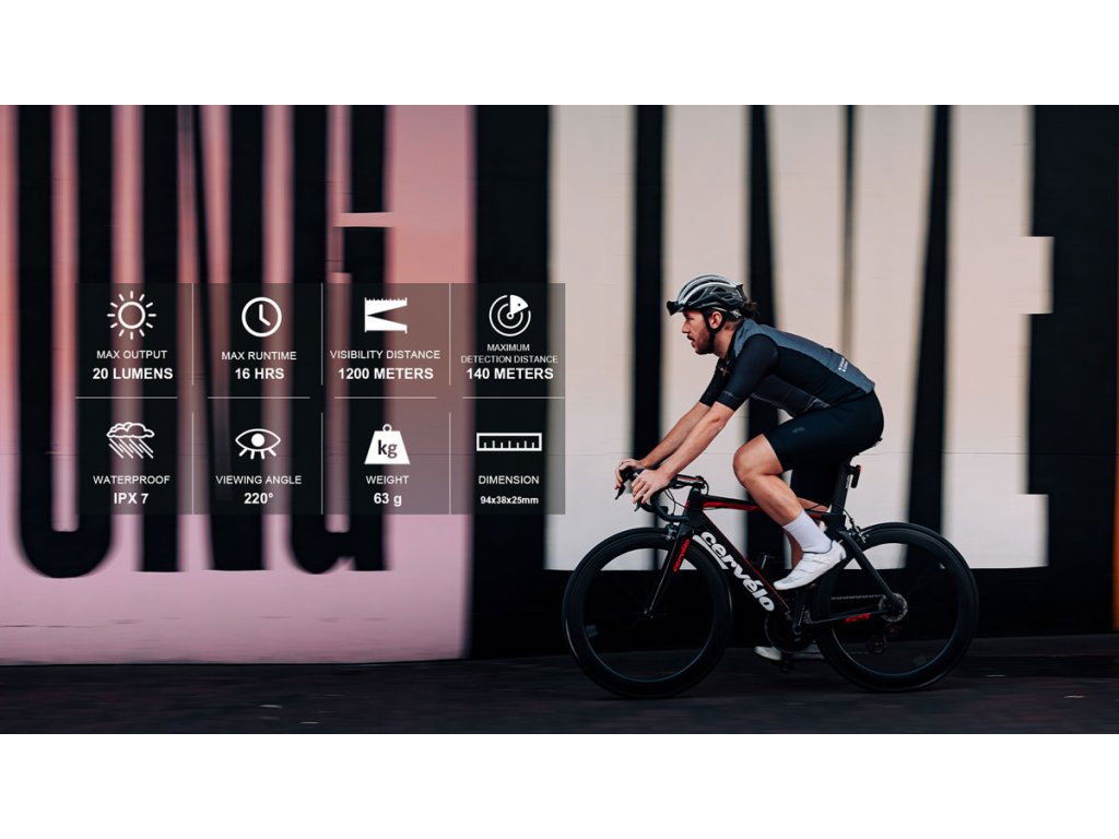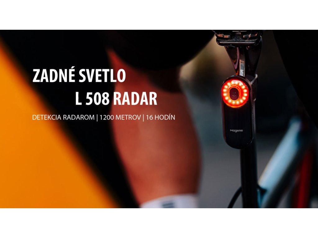 Svetlo L508 RADAR zadné 7f USBZadné svetlo s radarom SEEMEE 508 kombinuje výkonné osvetlenie a inteligentné varovanie pred vozidlami. Radar na 24 GHz s 40° vyžarovacím uhlom dokáže rozpoznať vozidlá až do 140 m (aj v zákrutách) a cez ANT+ radar protokol posiela vizuálne a zvukové upozornenia do kompatibilného cyklopočítača, hodiniek alebo displeja. Svetlo má široký 220° pozorovací uhol s viditeľnosťou až 1,2 km, takže je dobre čitateľné cez deň aj v noci. |